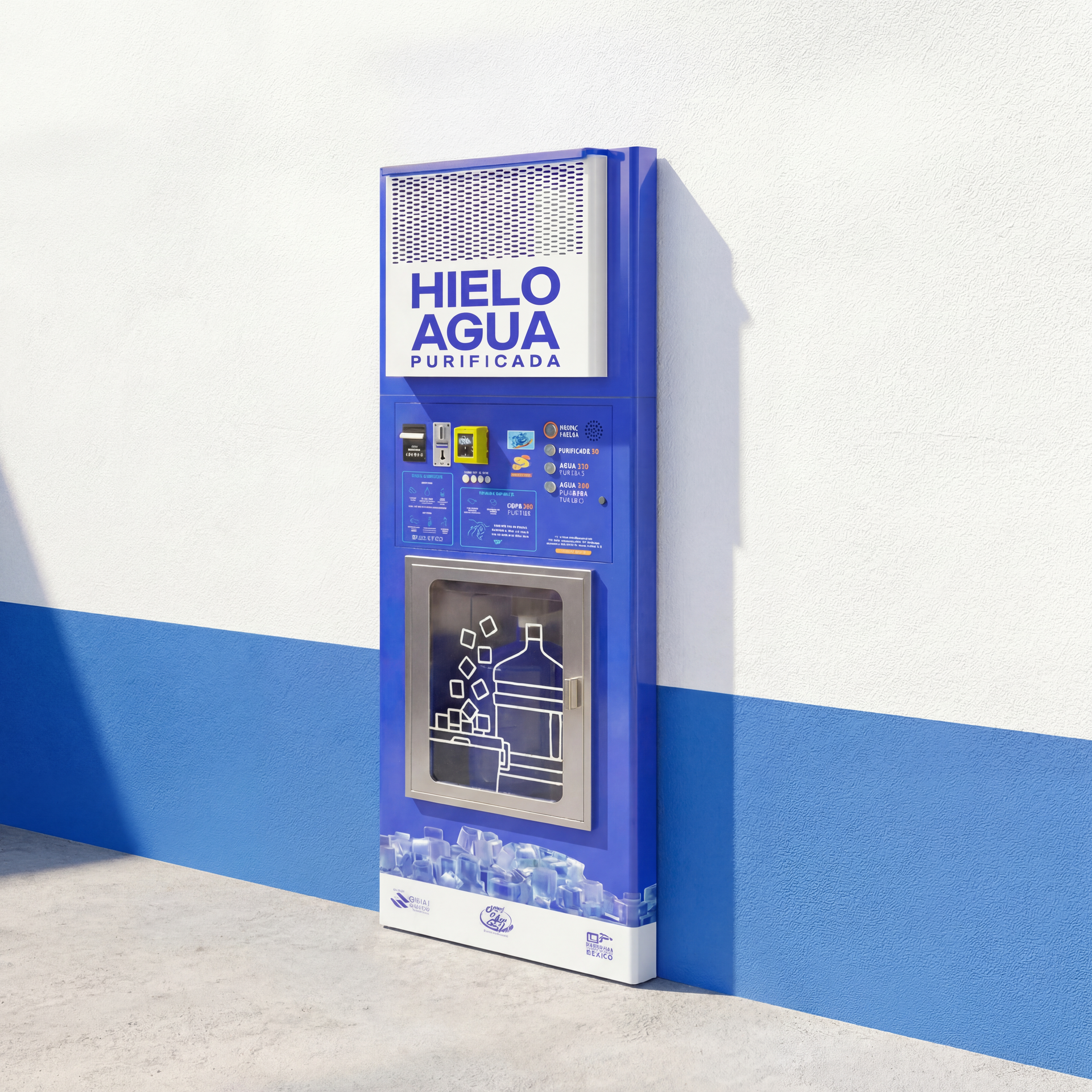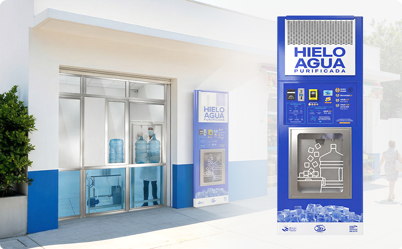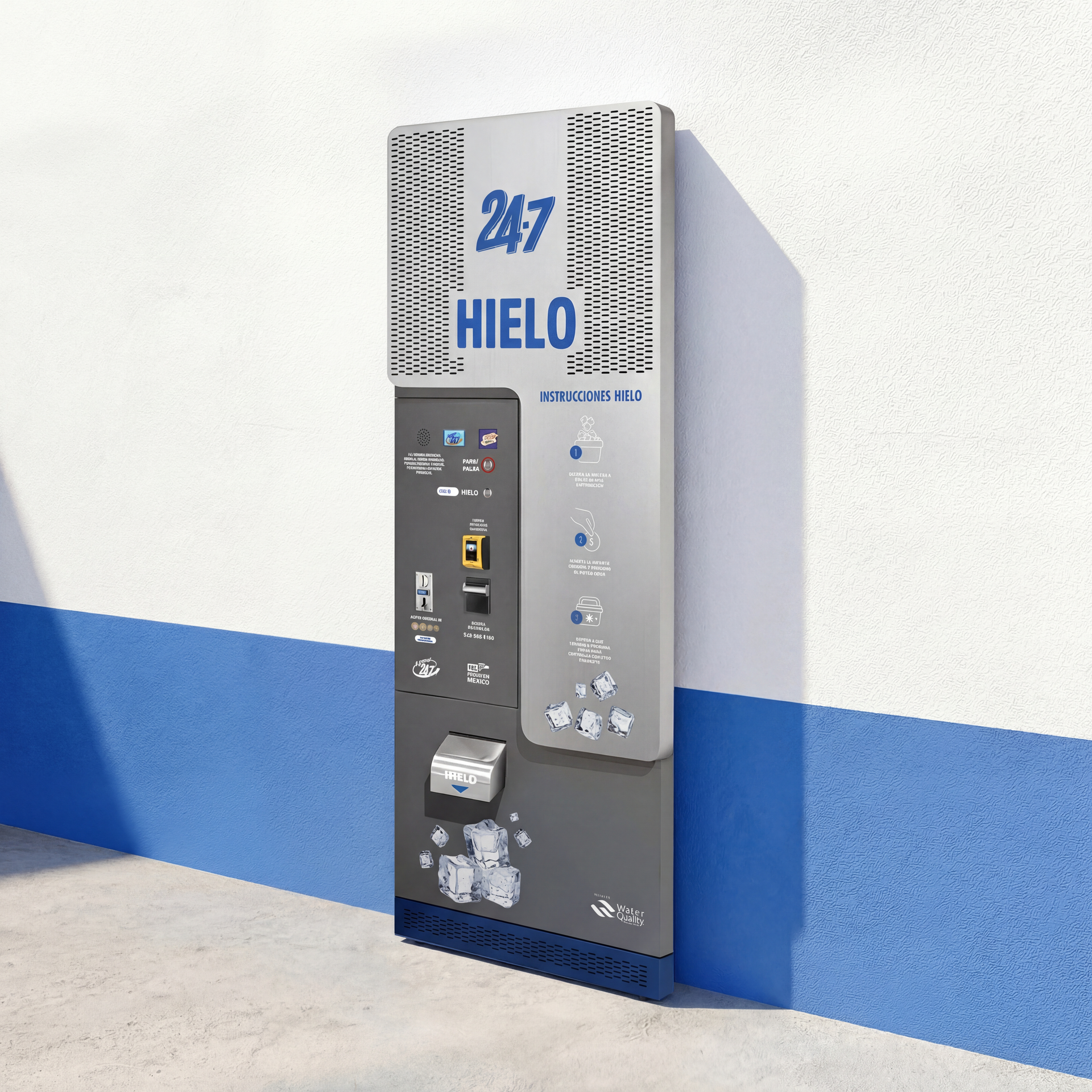 Máquina de Hielo & Agua de operación automática 24-7 sin personal adicional. Funciona con el sistema de purificación que ya tienes.